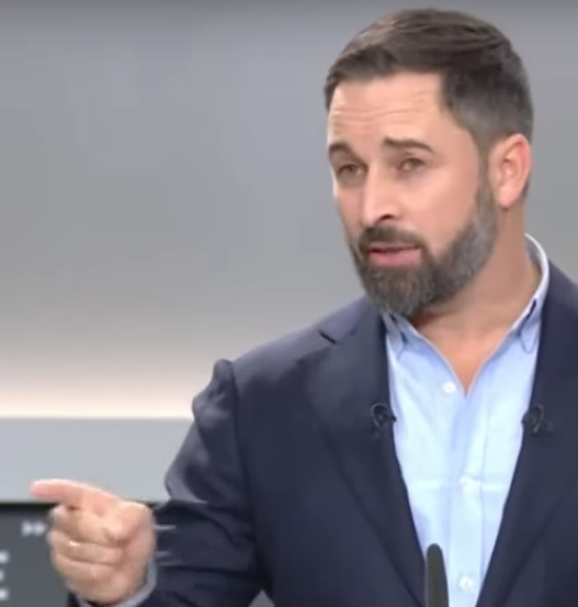 Primera intervención de Santiago Abascal.- Movimiento de brazo arriba abajo y dedo acusador muy presente; agresividad explícita